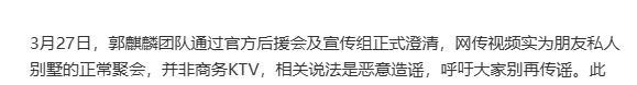 就在视频风波闹得沸沸扬扬,还不到24小时的时候,郭麒麟的团队率先打破了沉默。